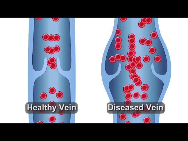 Enlarged, twisted superficial veins caused by valve failure. When valves stop functioning properly, blood flows backward (reflux), leading to increased venous pressure.